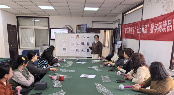 三月春风暖,阅读正当时。在第116个“三八”国际妇女节来临之际,为丰富社区女性居民的精神文化生活,引导女性通过阅读的方式来认识自我、关爱自我,3月6日上午,青岛市图书馆依托“云上青图”数字阅读品牌,走进金湖路街道亢家庄社区,开展了以“书香三月·阅己悦己”为主题的数字阅读惠民行活动,将数字阅读的便捷与传统文化手作的温暖送到了社区女性居民身边。