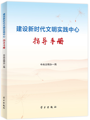 为进一步指导和推进新时代文明实践中心试点工作,中央文明办组织编写《建设新时代文明实践中心指导手册》。该《指导手册》立足解决基层文明实践中可能遇到的问题和难点,分文明实践、大众平台、坚强阵地、精神家园、广阔舞台、优化配置、融合创新、组织领导八个章节,既给出理论指导,又提供解决问题的思路和方法,辅之以生动的地方经验和典型案例,将各地试点工作中的好做法好成效展现出来,为基层文明实践活动开展提供优秀范本和理论遵循。