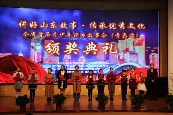 1月27日,“讲好山东故事·传承优秀文化”全省首届青少年读书故事会(青岛赛区)决赛在青岛市图书馆圆满落幕。从海选中脱颖而出的60位优秀选手,分为6-9岁组和10-15岁组进行了精彩的决赛比拼。选手们通过对众多原创及脍炙人口的时代故事、红色故事、传习故事、校园故事、德育故事、好人故事、家风故事、亲情故事以及成长故事等的真情讲述,用实际行动发掘和展示了新时期的山东精神。本次比赛通过山东公共文化云进行了网络直播,全天共有52.6万人通过网络观看了此次活动。 本次“讲好山东故事·传承优秀文化”全省首届青少年读书故事会(青岛赛区)活动,由山东省图书馆和山东省图书馆学会主办,青岛市图书馆承办,日照市图书馆、烟台图书馆、威海市图书馆和潍坊市图书馆协办。 在活动举办过程中,各地市公共图书馆依托自身资源优势开展海选活动,并从中选拔优秀选手参与青岛赛区决赛。多地市联合互动的活动模式,起到了以点带面、多点互联的作用,进一步提高了读书故事会活动的影响力,对优秀的山东文化和新时期的山东精神起到了很好的宣传作用,在提升社会知名度与影响力的同时,也突显了公共图书馆在提高公民文化素养、弘扬社会主义核心价值观等层面发挥的重要作用。 为适应新时期“互联网+”的潮流,引导更多青少年参与,本次活动采取了线上线下相结合的选拔模式,所有参赛选手均通过活动平台喜马拉雅APP在线参加海选。这一创新模式突破了时间、空间的限制,激发了青少年们的参与热情。据统计,本届青少年读书故事会(青岛赛区)共吸引了来自五个地市的1200人多人报名,参与人数和范围都相当广泛。 为确保大赛的公正性和专业性,本次青岛赛区决赛邀请了青岛经济广播主持人冯震翔、青岛桦川路小学副校长何岷、青岛广播电视台国家播音指导施夏、青岛经济广播主持人岳磊以及青岛话剧院国家一级演员、国家“梅花奖”得主曾拥军担任比赛评委。赛后,评委们从参赛选手们的故事选材、表演技巧、语音语调等方面进行了生动具体的点评剖析,在场观众和选手们均表示获益良多。 最终,通过一整天的深情讲述,6-9岁组和10-15岁组分别决出一等奖10名,二等奖20名。日照市图书馆、潍坊市图书馆、威海市图书馆、烟台图书馆、青岛市图书馆获得优秀组织奖。 青岛市文化和旅游局公共文化处张洪祥调研员、青岛市图书馆于婧馆长、山东省图书馆读者活动部常安军主任、山东省图书馆少儿部张铁柱主任,以及来自日照、潍坊、威海、烟台、青岛五市图书馆的领导出席了颁奖仪式。 常安军主任为获得10-15岁组一等奖的选手颁奖 于婧馆长为获得6-9岁组一等奖的选手颁奖 张洪祥调研员获得优秀组织奖的单位颁奖 获奖选手与颁奖嘉宾合影 “讲好山东故事·传承优秀文化”全省首届青少年读书故事会(青岛赛区)活动的成功举办,在丰富群众文化生活、共享文化发展成果的同时,通过对新时期山东故事的真情讲述,用实际行动发掘和展示了优秀的齐鲁文化,也让跟多人领略了优秀山东文化的感召力,对于引导全社会形成积极向上的文化价值取向,营造传承弘扬优秀传统文化的社会氛围,起到了十分积极的促进作用。 附:“讲好山东故事·传承优秀文化”全省首届青少年读书故事会(青岛赛区)获奖名单(排名不分先后) 讲好山东故事·传承优秀文化全省首届青少年读书故事会(青岛赛区)获奖名单