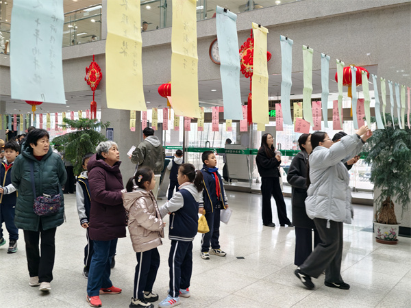 元宵节当天,青岛市图书馆二楼大厅张灯结彩,缤纷灯谜挂满展区,现场洋溢着喜庆祥和的节日氛围。此次灯谜会精心设计的谜题兼具知识性与趣味性,内容横跨历史文化、科普常识、生活智慧等多个领域,难易兼顾、老少皆宜。活动现场,读者们或驻足凝思小声探讨,或豁然开朗喜获答案,在动脑思考的乐趣中感受传统民俗的独特魅力。