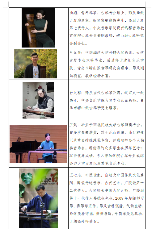 3、为保证学习效果,限报10人,根据报名先后顺序录取。因教学场地设施有限,不接受前期参加过的学员报名。古琴教室有古琴和琴桌,上课时学员可以不带琴。
