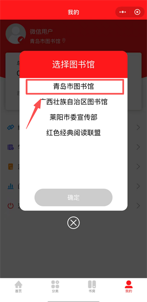 在“我的”界面选择青岛市图书馆