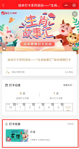十二生肖,作为中华民族古老而独特的民俗文化符号,承载着千年的历史记忆与深厚的人文底蕴。它贯穿于人们生活的方方面面,从出生属相到纪年历法,从民间故事到艺术创作,其影响无处不在。为激发小朋友对十二生肖文化的热爱与关注,促进文化的传承与发展,青岛市图书馆联合超星移动图书馆特别举办本次“十二生肖绘本打卡”活动,鼓励孩子们通过阅读绘本、打卡分享的形式,深入探索十二生肖背后的故事,引导孩子们走进阅读的世界,感受故事的魅力。