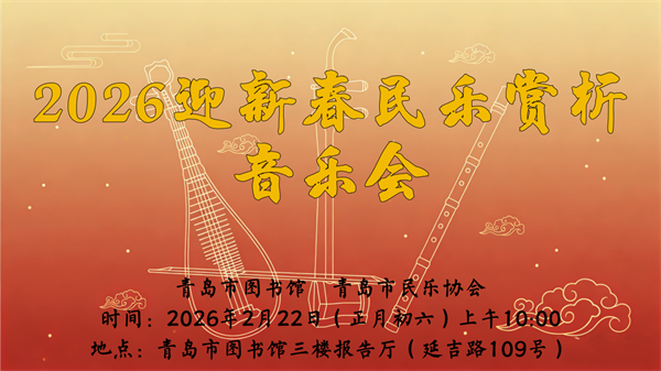 春归岛城添雅韵,弦管齐鸣贺新程。作为深受青岛市民喜爱的春节文化品牌活动,青岛市图书馆联合青岛市民乐协会打造的迎新春民乐赏析音乐会,即将如期与广大市民见面。多年来,这场音乐会始终陪伴岛城市民共度新春,用丝竹之音串联起新春的喜悦,传递着传统民乐的深厚底蕴。