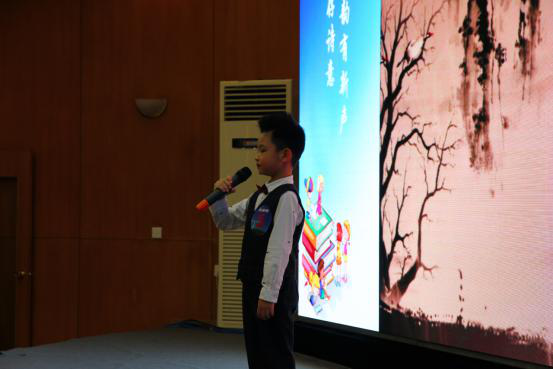 (青岛东胜路小学的鞠子硕同学以朗诵+唱歌的形式让观众们对《水调歌头·明月几时有》有不同理解)