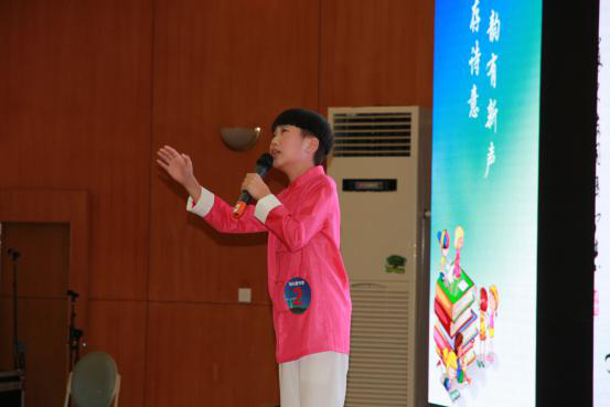 (获得二等奖的市南区实验小学的于子谭深情演绎《蜀道难》)