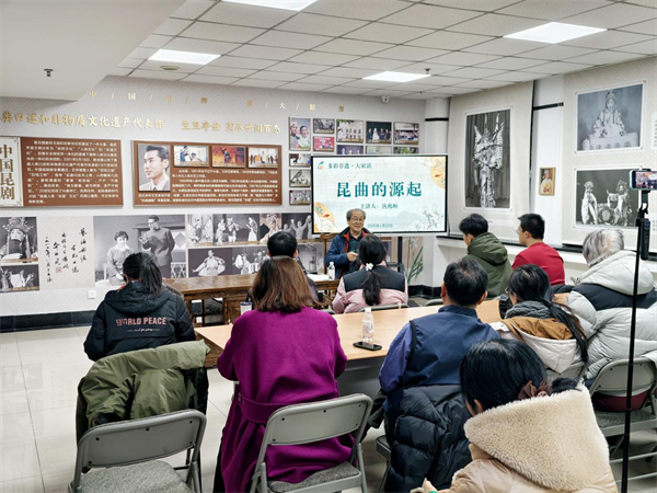 95岁的丛老虽已鲐背之年,但依然精神矍铄,神采奕奕。讲座中,他旁征博引,以渊博的学识和深厚的艺术积淀,将昆曲古典之起源、流变娓娓道来。从屈原的楚骚《九歌》始,中经隋唐的水调北曲与宋元的磨腔南词,更历十六世纪魏良辅、过云适、张野塘等文学艺术家的不懈奋斗,终于和合了北杂剧和南戏文,使中国的综合戏剧文明在明末清初达到封建社会艺术的高峰。在丛老充满激情的讲述中,在场读者不仅了解了昆曲外在的声腔之美,更深刻感受到了他那份根植于血脉的文化自信与民族自豪感,仿佛透过这一门艺术,看到了中华文明绵延不绝的生命力。
