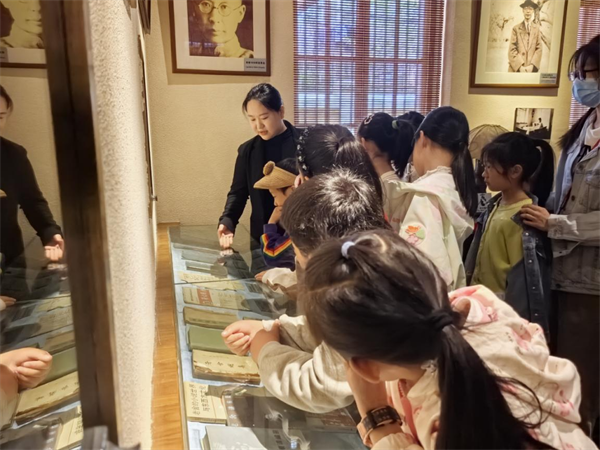 活动伊始,在博物馆工作人员的引导下,孩子们有序参观展馆,近距离欣赏老舍先生的珍贵实物展品与影音史料。工作人员以生动形象的语言为小读者讲述了老舍先生的生平经历、创作历程,及其在青岛期间的生活足迹。通过一件件珍贵的手稿、老照片以及生动的历史影像,孩子们仿佛穿越时空,置身于老舍先生当年创作《骆驼祥子》的现场,了解老舍先生在青岛生活创作的过往,深切感知本土人文底蕴与文学魅力。