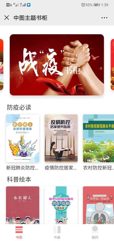 为扩展线上服务范围,疫情发生以来,青岛市图书馆与知网、万方、维普等国内知名数字资源平台合作,在官网推出了“轻咨询疫情专题”,持续开展文献传递和解答网络咨询,为读者提供全方位的文献信息服务。在微信公众号上推出的涵盖新型冠状病毒公共及个人防护、防治,防控知识问答,心理防护、疏导,儿童防疫绘本,传染病防治法等诸多防控知识的战“疫”主题书柜,内含防护主题书籍39册,向市民读者普及科学知识,引导大家正确认识疫情,凝聚正能量、增强市民读者战胜疫情的信心;同时还在线分设了习近平的“书柜”、党建书柜、马克思研究书柜、中华传统文化书柜、“世界好书”书柜、财富书柜、青少年书柜、她书柜以及祖国70周年书柜等主题书柜,方便市民在线学习和阅读。