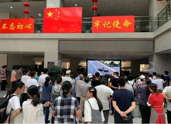 国庆当天,读者欢聚青岛市图书馆共同观看国庆70周年阅兵仪式