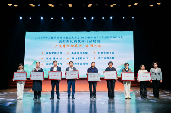 在山东省文化和旅游厅主办,山东省图书馆、各市文化和旅游局承办,16市图书馆共同执行的“2025齐鲁文化情景阅读创意大赛”“2025山东省青少年成语经典故事会”两项赛事中,青岛市图书馆积极组织十区市图书馆开展大赛的选拔和推荐工作,最终,由我馆推荐的参赛作品在全省决赛中荣获多个奖项,青岛市图书馆荣获“优秀组织单位”称号。