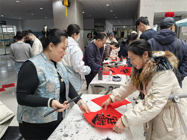 岁时序章,春启新元。为传承中华优秀传统文化,增添新春喜庆氛围,小年当日,青岛市图书馆特邀岛城书法爱好者,在二楼大厅举办了“书香暖冬 小年送福”活动,以笔为媒,以墨传情,为读者们送上新春“福”字。