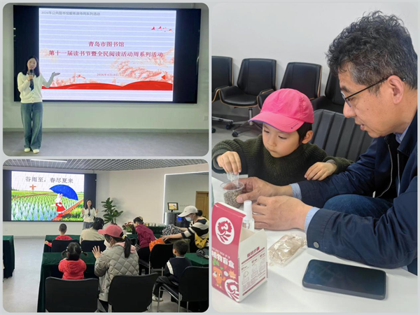 4月18日下午,青岛市图书馆携手青岛市实验幼儿园,在拓空间举办“书香伴谷雨,手植小美好”主题亲子活动。活动深度融合节气文化与阅读推广,老师带领大家讲读绘本《谷雨至,春尽夏来》,让孩子们在故事中感受传统节气的独特魅力;共同欣赏音乐《谷雨》,营造沉浸式传统文化氛围。现场孩子们还亲手种植盆栽盲盒,在动手实践中体验生命成长的乐趣。活动将阅读、艺术与自然教育完美结合,既丰富了幼儿的文化体验,也增进亲子互动交流,得到了家长和孩子们的一致好评。