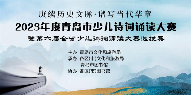 为进一步弘扬中华优秀诗词文化,赓续历史文脉,传承中华诗词经典,谱写当代华章,增进广大少年儿童对中华优秀传统文化的认同和感悟,根据《山东省文化和旅游厅关于组织举办第六届全省少儿诗词诵读大赛的通知》要求,青岛市文化和旅游局决定组织举办“2023年度青岛市少儿诗词诵读大赛暨第六届全省少儿诗词诵读大赛选拔赛”。本次大赛由青岛市文化和旅游局主办,各区(市)文化和旅游局、青岛市图书馆承办,各区(市)图书馆联合协办。喜欢诗词朗诵的小读者们,快来报名吧!大赛的具体要求如下: