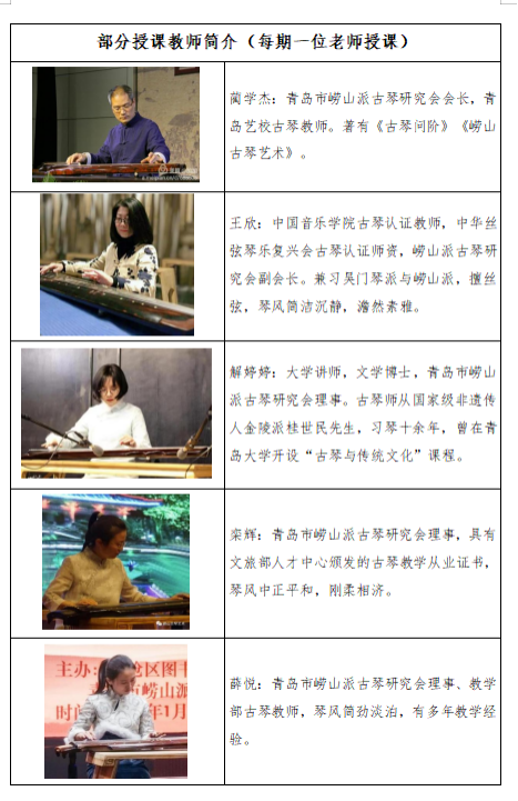 为满足广大古琴爱好者的需求,青岛市图书馆尼山书院联合青岛市崂山派古琴研究会开设古琴公益课程。本期课程由王懿老师授课,欢迎零基础的古琴爱好者报名参加!