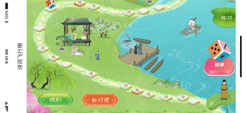 玩家通过投掷骰子获得点数,按点数前进格子,完成系统所派发的相关诗词任务,最后到达终点的玩家获胜,排行榜按完成时长排名。