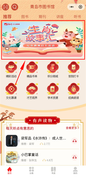 十二生肖,作为中华民族古老而独特的民俗文化符号,承载着千年的历史记忆与深厚的人文底蕴。它贯穿于人们生活的方方面面,从出生属相到纪年历法,从民间故事到艺术创作,其影响无处不在。为激发小朋友对十二生肖文化的热爱与关注,促进文化的传承与发展,青岛市图书馆联合超星移动图书馆特别举办本次“十二生肖绘本打卡”活动,鼓励孩子们通过阅读绘本、打卡分享的形式,深入探索十二生肖背后的故事,引导孩子们走进阅读的世界,感受故事的魅力。
