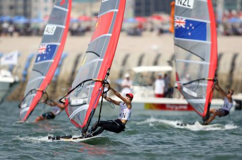 (2008年8月20日奥运会女子帆板RS:X级奖牌轮决战在青岛奥帆中心上演)