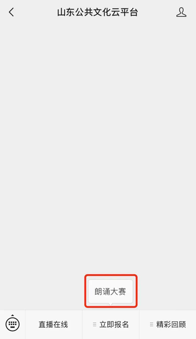 点击菜单栏中“立即报名”中的“朗诵大赛”,跳转进入小程序首页。