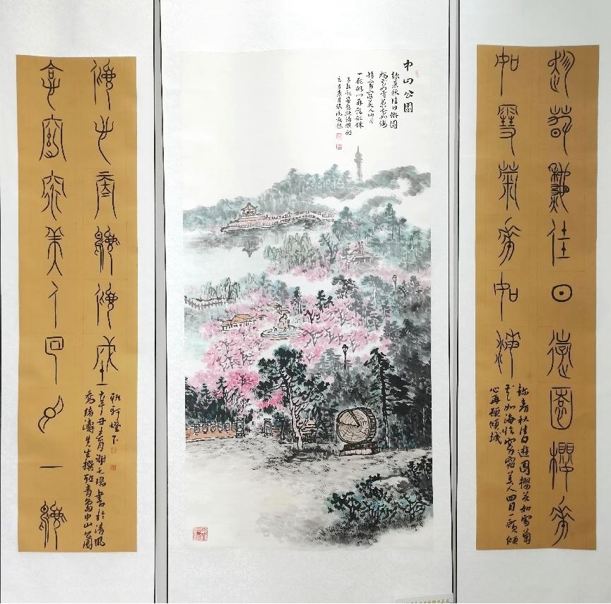 青秋月色千重景,岛城书画尽赋情。在中秋佳节到来之际,青岛市图书馆特别邀请了青岛市文联、民盟青岛市委员会以及青岛市楹联艺术家协会共同为广大市民朋友们呈上一场精彩的书画展:青岛百景中堂楹联书画展。展览共展出中堂作品60余套,以青岛著名景点画作为中堂,与景点对应的楹联书法相结合,楷、行、篆、隶、草五种书体具备,样式新颖。细细观赏,多有画龙点睛之笔。