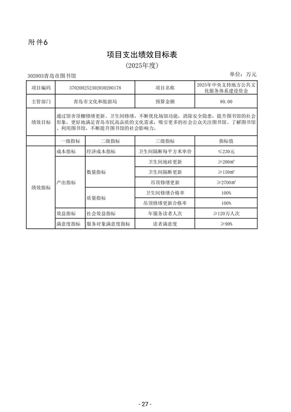 2025年度青岛市图书馆预算